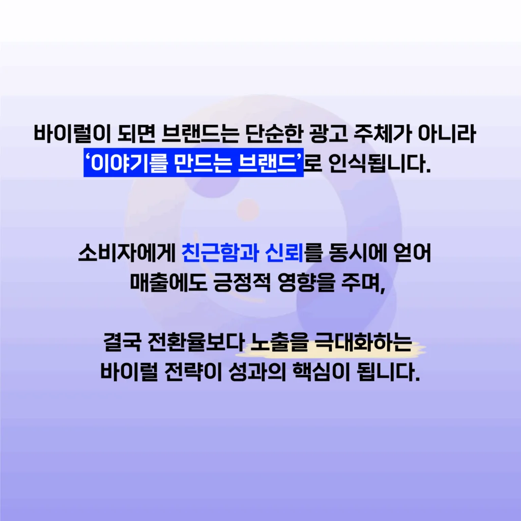 바이럴 마케팅은 결국 ‘사람이 공감하고 자발적으로 퍼뜨릴 만한 이야기’를 만드는 일입니다.