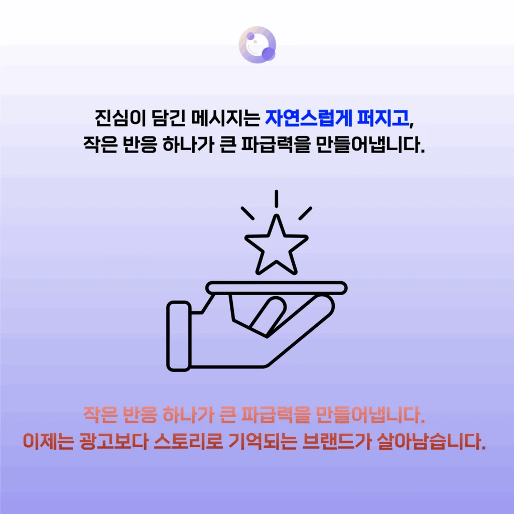 단기 성과를 노리기보다, 브랜드의 진정성과 메시지가 자연스럽게 확산되도록 설계해야 합니다.